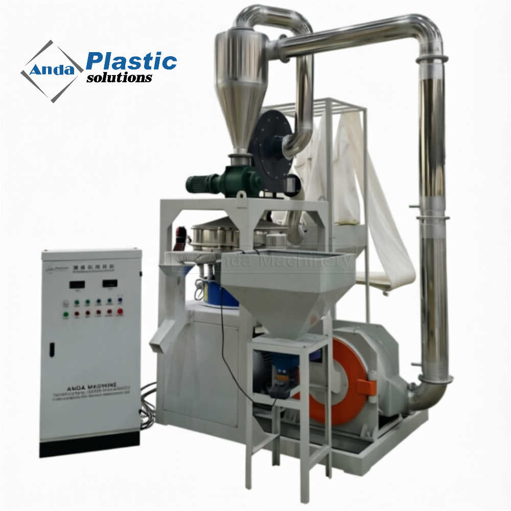 Características principales:<\/strong><\/p> 1. Adopta un sello de aceite importado de Alemania, no se producen fugas.<\/p> 2. Tiene un dispositivo recolector de polvo, lo que reduce efectivamente la contaminación por polvo.<\/p> 3. Utilizando refrigeración por agua y aire, reduzca efectivamente la temperatura de trabajo del cuerpo de la máquina.<\/p> 4. La puerta de la máquina principal se puede abrir, lo que facilita la reparación y el reemplazo de la herramienta.<\/p> 5. Todos los tubos de transporte están hechos de acero inoxidable, a prueba de óxido y no contaminan el material de PVC.<\/p> <\/p> <\/p> <\/p> Parámetros principales:<\/strong><\/p> Modelo<\/p><\/td> SMF-400<\/p><\/td> SMF-500<\/p><\/td> SMF-600<\/p><\/td> SMF-800<\/p><\/td><\/tr> Potencia del motor principal (KW)<\/p><\/td> 30<\/p><\/td> 37<\/p><\/td> 55<\/p><\/td> 75/90<\/p><\/td><\/tr> Capacidad (kg/h)<\/p><\/td> 50-120<\/p><\/td> 150-200<\/p><\/td> 200-400<\/p><\/td> 500-700<\/p><\/td><\/tr> Peso (kg)<\/p><\/td> 1000<\/p><\/td> 1200<\/p><\/td> 1800<\/p><\/td> 1900<\/p><\/td><\/tr> Finura de salida<\/p><\/td> Malla 30-50 ajustable.<\/p><\/td><\/tr> Enfriamiento<\/p><\/td> Enfriamiento por viento + enfriamiento por agua<\/p><\/td><\/tr><\/tbody><\/table><\/div>